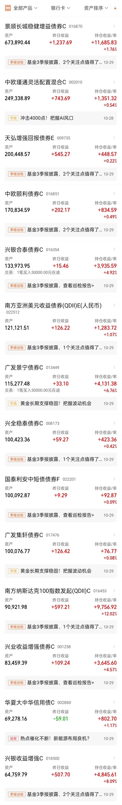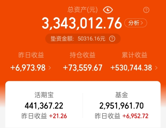10月30【投资收益及部分持仓明细】累计收益超53.0万。昨日收益6973元。