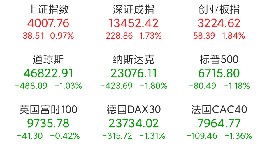 更新几个数据和消息: 周四的A股港股表现还不错,上证指数再度收复4000点,创业板指也收涨1.84%,港股恒生指数和恒生科技都成功的收涨2个多点,短期的技术面有反弹想好的迹象,短线的情况看着有好转。 不过晚盘的市场看着就又有压力了,道琼斯、纳斯达克、标普500的跌幅都超过了1%,英国、德国、法国市场的表现也不佳,外围市场的短期示弱,或影响后续A股和港股的情绪,就看周五的市场还能不能继续独立行情了。...