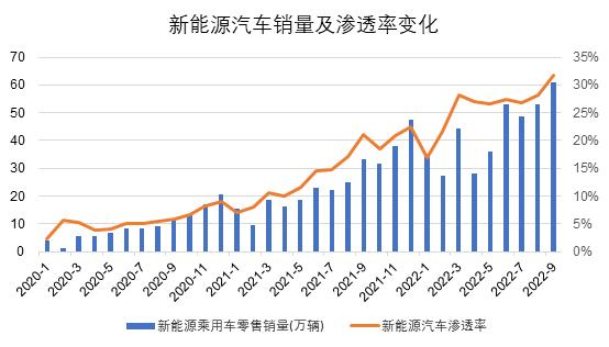进入“金九银十”的传统旺销期,新能源车的渗透率持续提升。根据乘联会公布9月份全国乘用车市场数据显示,9月新能源汽车零售渗透率首次突破30%大关达到31.8%(数据来源:Wind,下同),这意味着市场对新能源汽车的认可提升到了一个新的高度。而从产能角度来看,新能源汽车9月75.5万辆的产量续创新高以及连续5个月的环比正增长也表现出车企强烈的生产意愿,产销两端均显示新能源车行业的持续高景气。(数据来源...