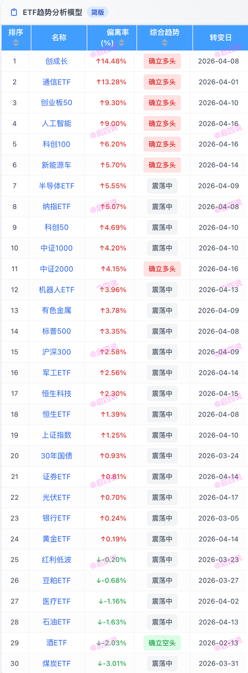 今日复盘 又新高了,轮动账户年内收益突破43%,已经超越了去年。 3天之前刚突破33%,以为已经是极限了,没想到新高之后还有更凶猛的新高。 复盘的时候,才发现现在有了一个“创业板七姐妹”的说法(对应“纳指七姐妹”),这7家大市值龙头主导着创业板结构性牛市,而恰巧占比权重最高的ETF又被我买到了。 这个月它的涨幅已经达到了26.44%。从技术面来看,短期确实超涨了,相比20日均线的偏离率也达到了14...